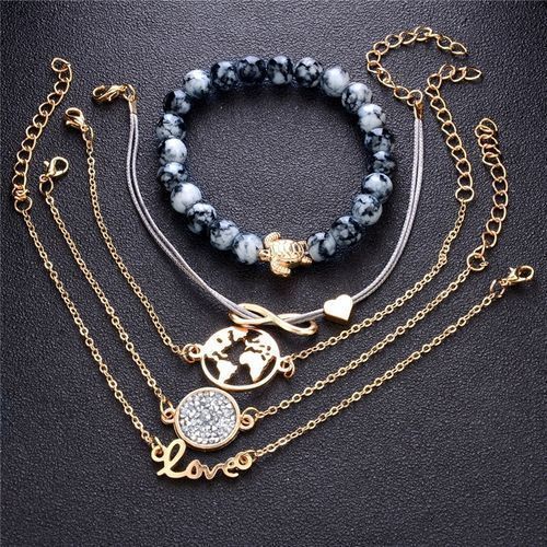 5pcs/set Fashion Natural stone beads chains Bracelets Set For Women